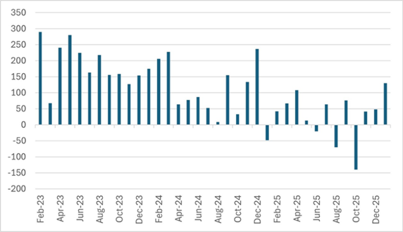 That optimism may prove premature. Core inflation accelerated to 0.3% month over month in January from 0.2% in December. Services inflation remains sticky, and airfares surged 6.5% in a single month. Producer price indices continue to signal tariff passthrough that has not yet appeared in consumer data. If those pressures emerge in the second quarter, the disinflation narrative could break down quickly. Meanwhile, the Federal Reserve is being pushed by political pressure, leadership transition uncertainty, and imperfect data. Markets are pricing a degree of policy confidence that may not be fully justified.