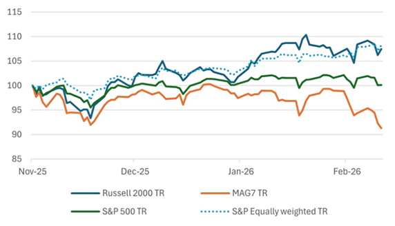 Chart 2: MAG 7, Russell 2000, and Equally Weighted S&P500 Indices Since the Start of 2026