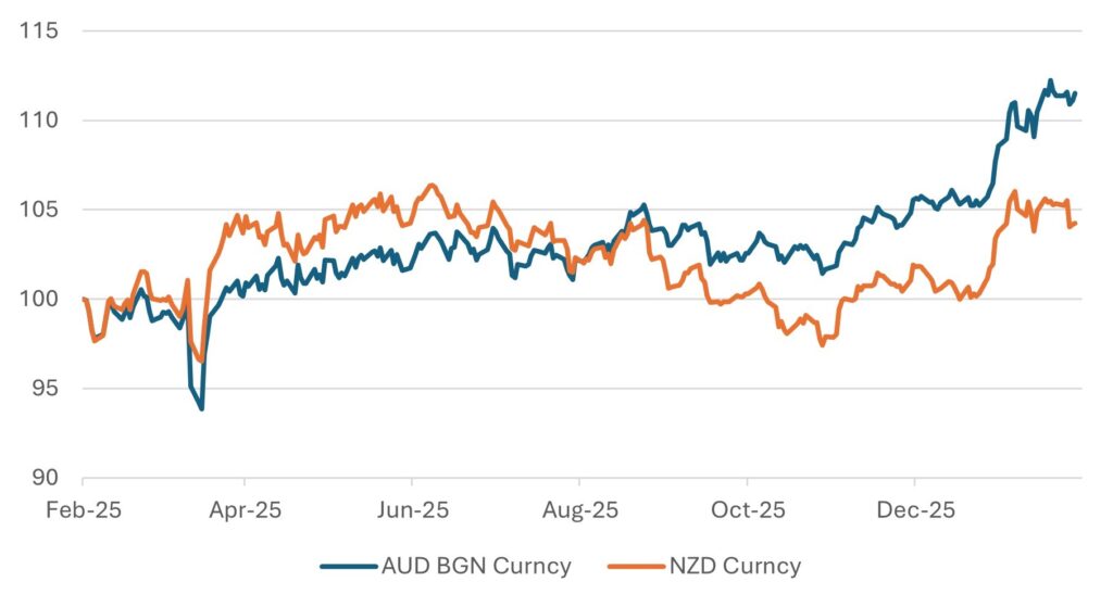 Against the US backdrop, Australia and New Zealand economies appear comparatively steady. The countries’ respective central banks have maintained disciplined fiscal stances, keeping policy rates elevated to ensure inflation credibility. Higher rates in this context are not punitive. They signal orthodoxy.