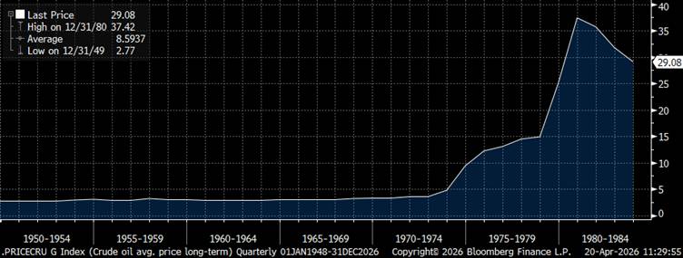 Chart 2: Historical price of oil through the 1970’s crisis and into the early ‘80s.